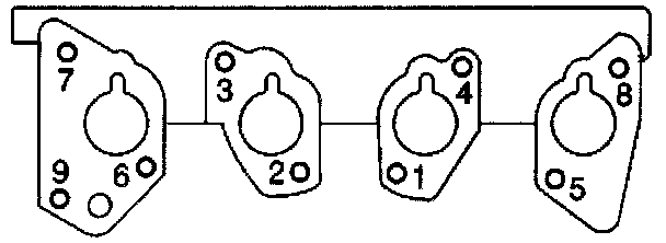 5. Install the lower manifold attaching nuts (3). Tighten the lower manifold attaching nuts 30.0 Nm (22 lb. ft.), using tightening sequence.