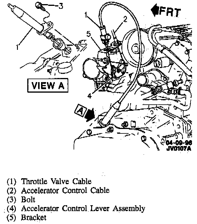 1. TV cable end from accelerator control lever assembly slot.