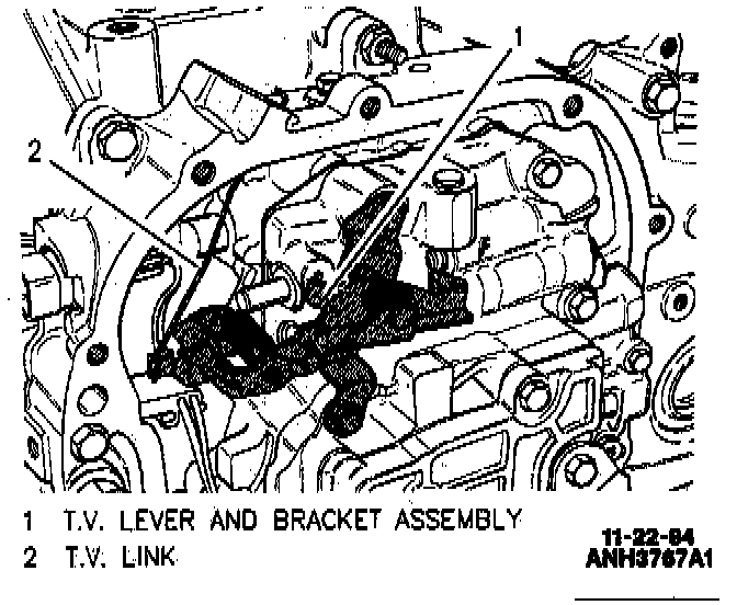 2. Transaxle end of cable to TV link and secure to transaxle case with bolt and washer assembly.