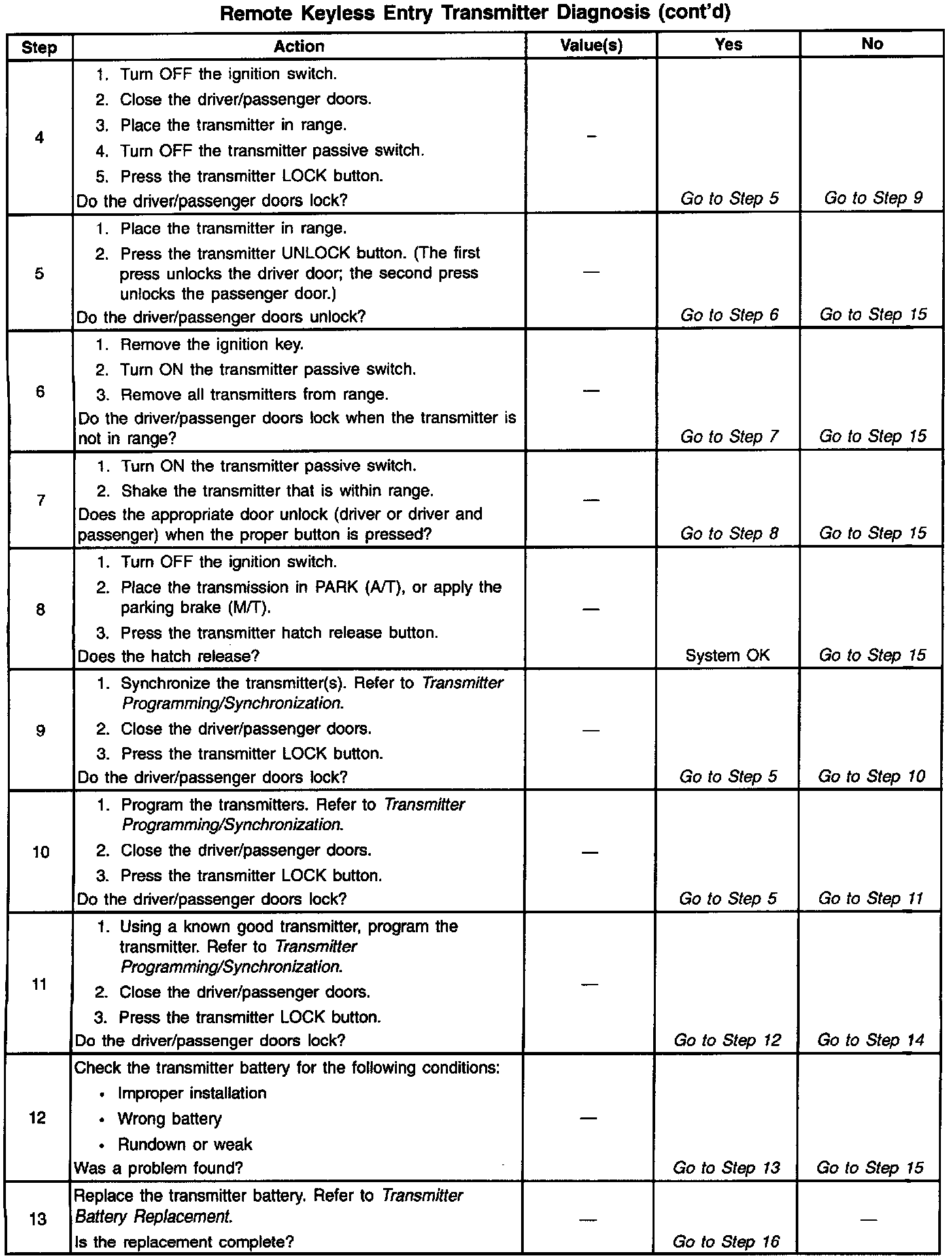 Remote Keyless Entry Transmitter Diagnosis: