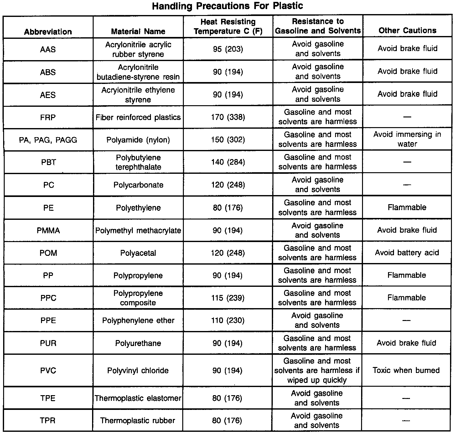 Handling Precautions For Plastic: