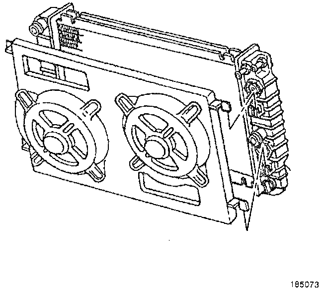 5. Install the fan shroud into the four retaining tabs on the radiator.