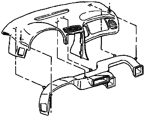 2. Remove the screws retaining the air distribution duct to the underside of the upper trim pad.