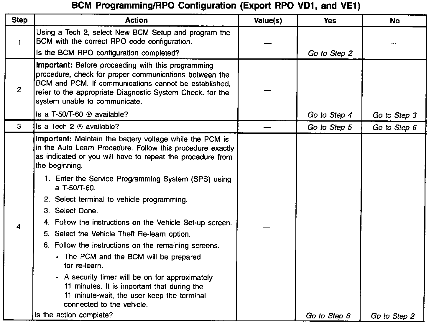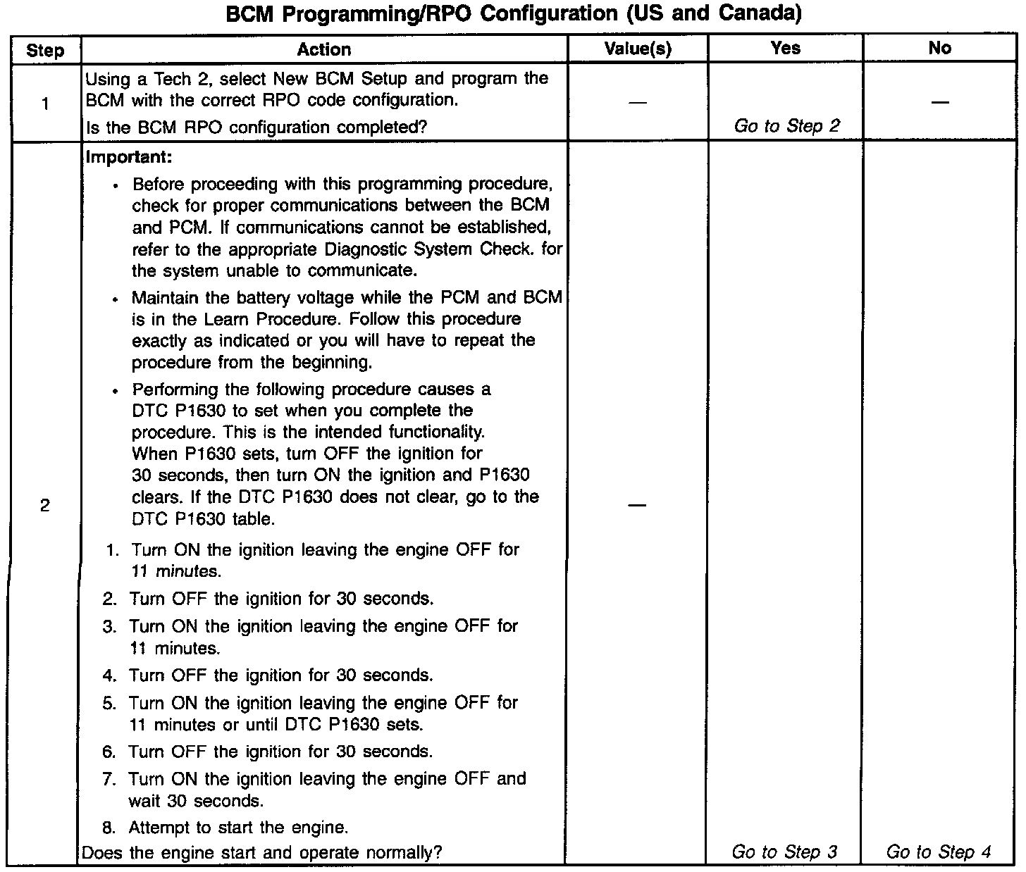 BCM Programming/RPO Configuration (US And Canada) (Part 1 Of 2):