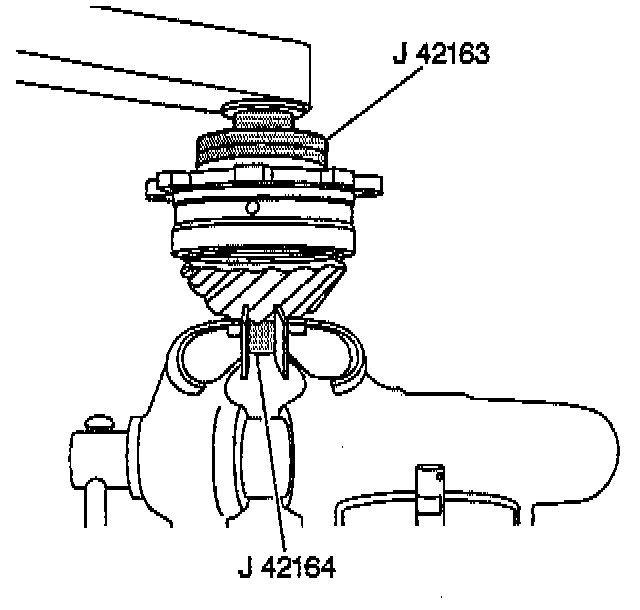 1. Remove the drive pinion nut from the drive pinion using J 42163 and J 42164.