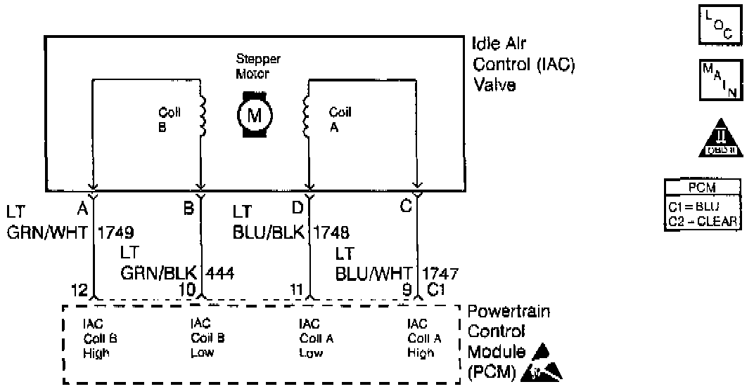- Poor connection at PCM or IAC motor. Inspect harness connectors for backed out terminals, improper mating, broken locks, improperly formed or damaged terminals, and poor terminal-to-wire connection.