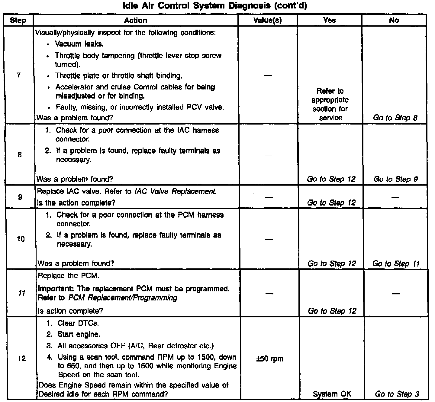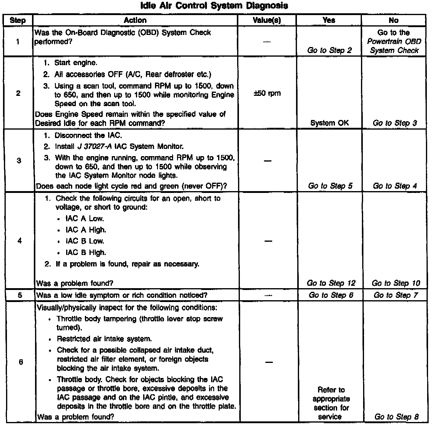 System Check - Idle Air Control (IAC )