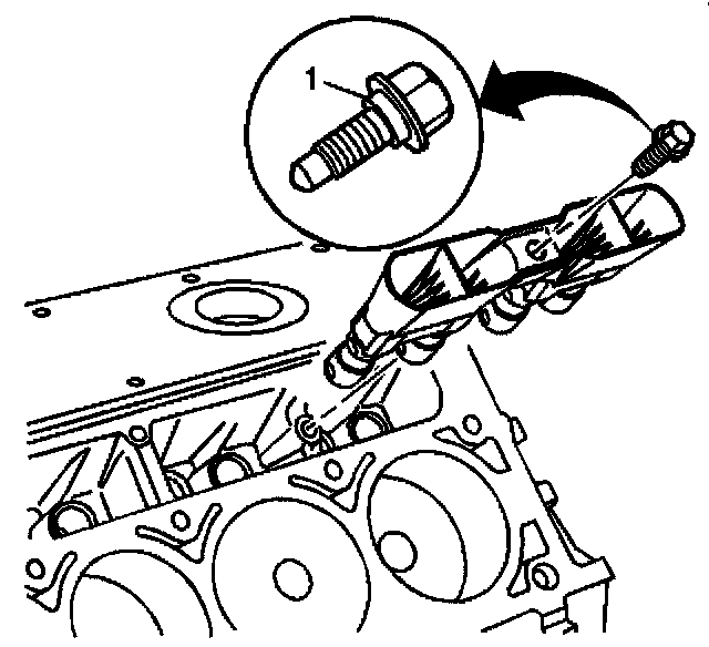 4. Install the valve lifter guide bolt (1).