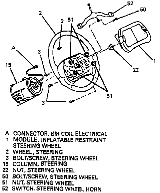 3. Horn switch (52) from inflatable restraint steering wheel module (1).