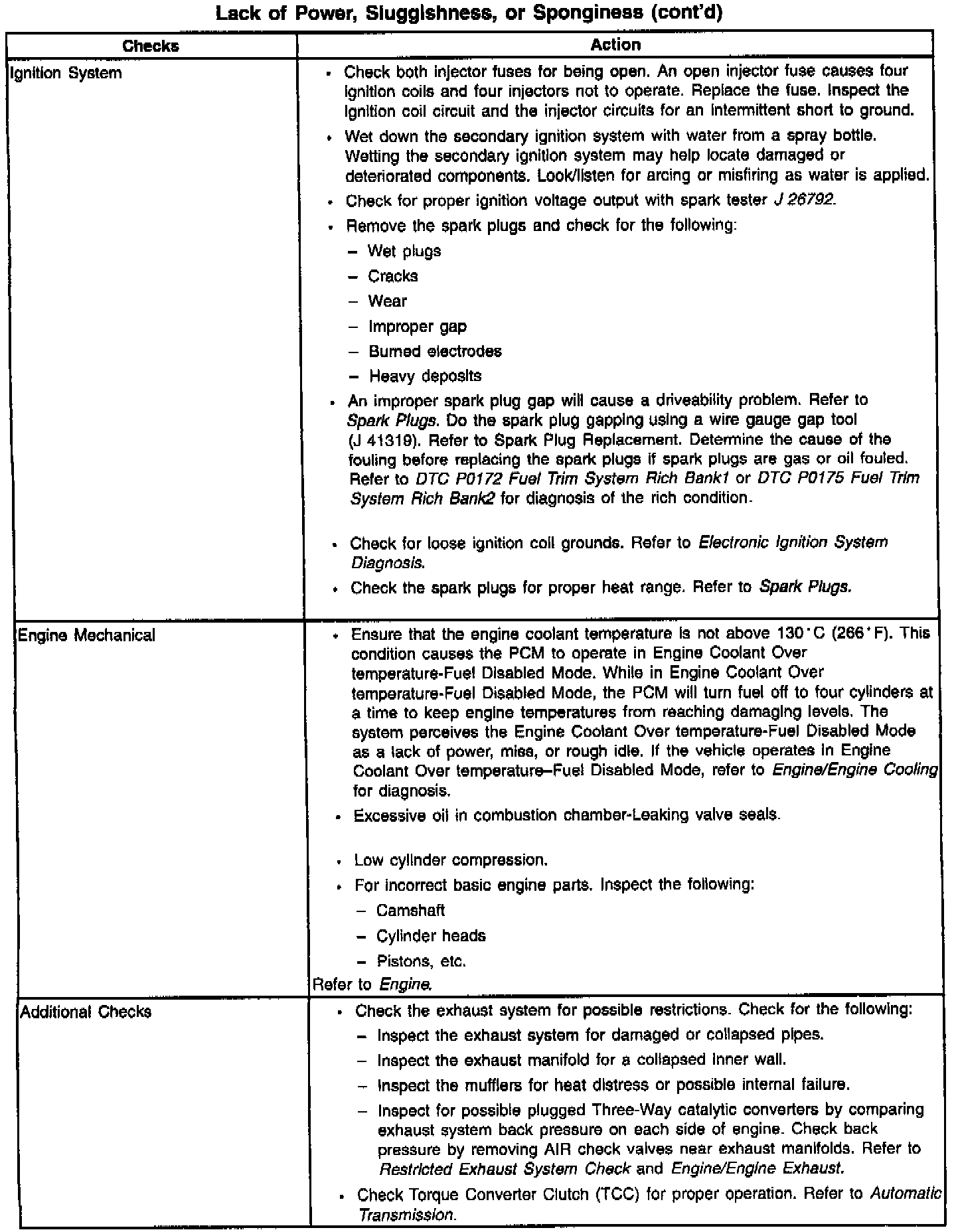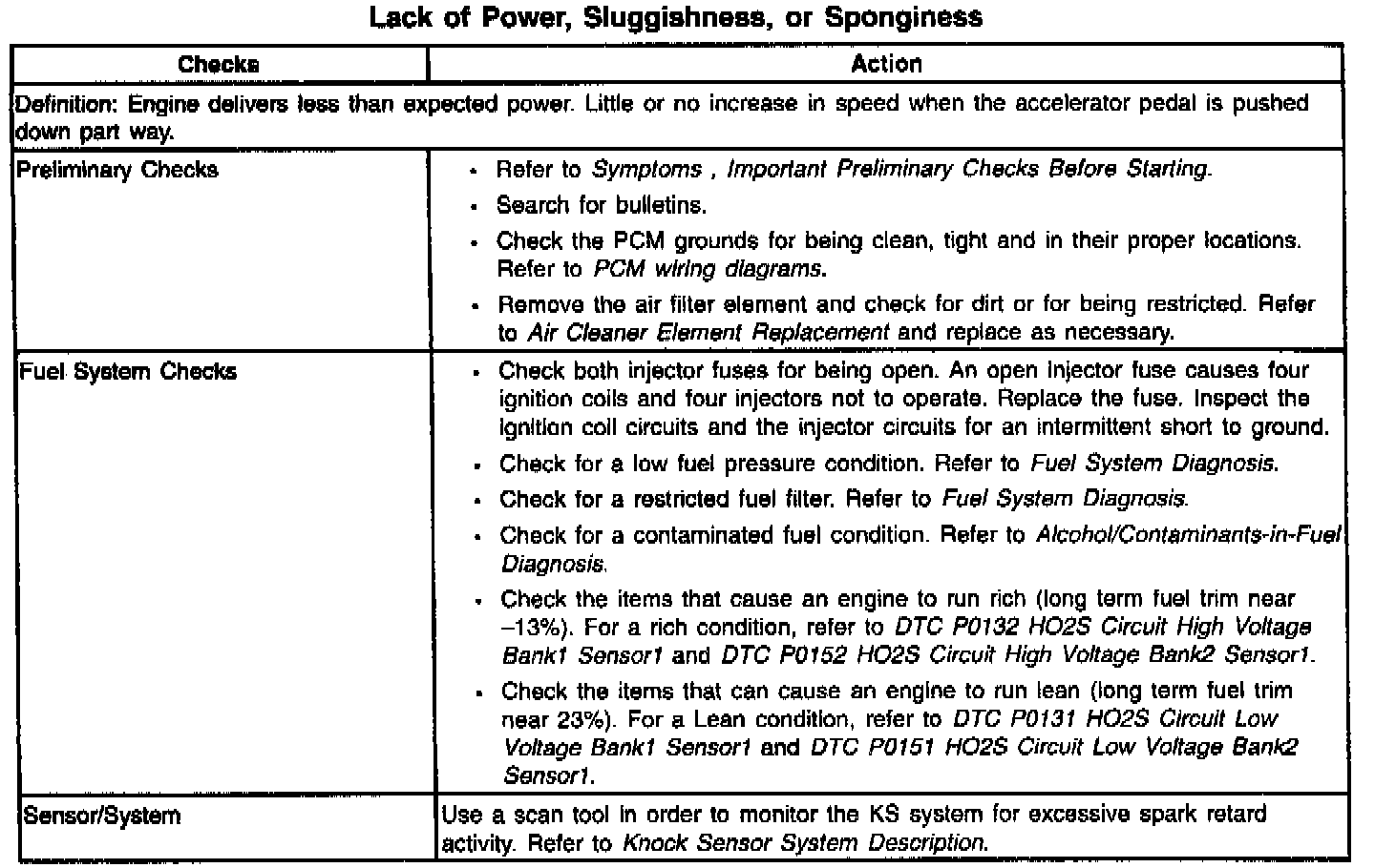 Lack of Power/Sluggish/Spongy/Stumble