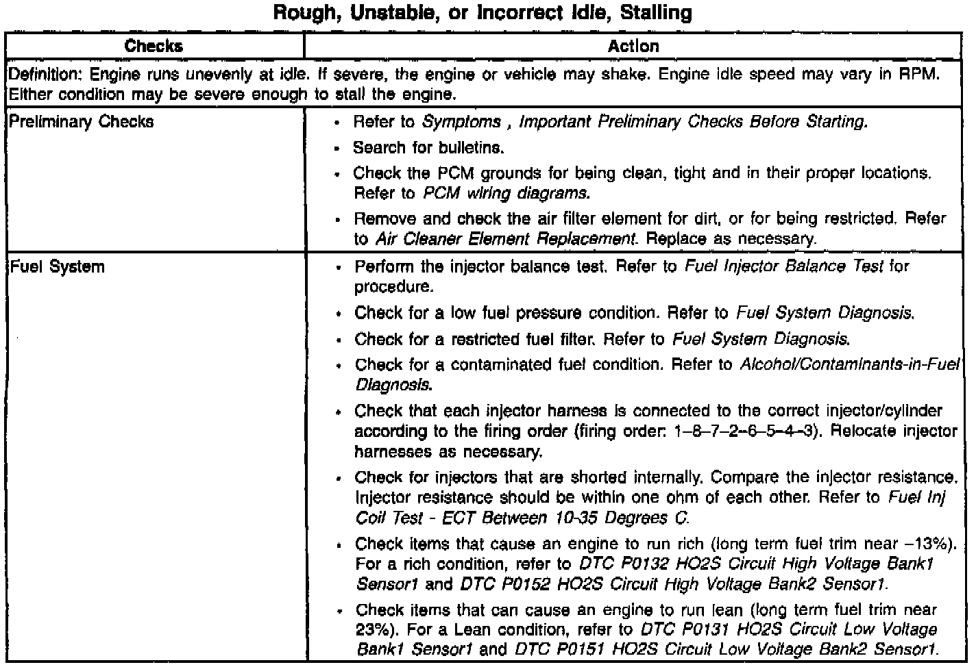 Rough, Unstable, or Incorrect Idle, Stalling