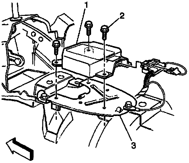 1. Disable the SIR system. Refer to Disabling the SIR System.2. Remove the front floor console. Refer to Front Floor Console in Instrument Panel, Gauges and Console.