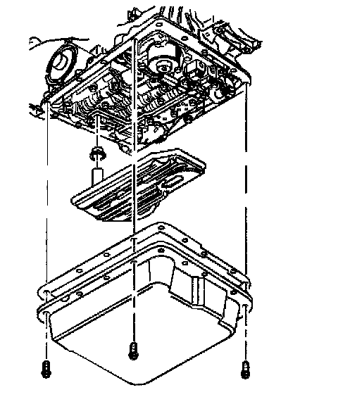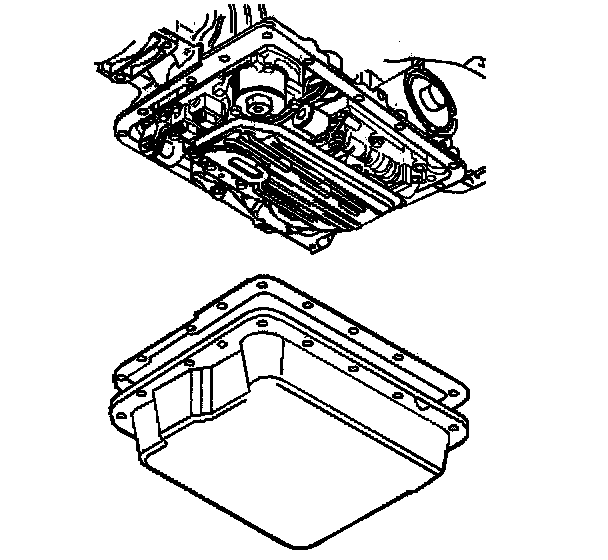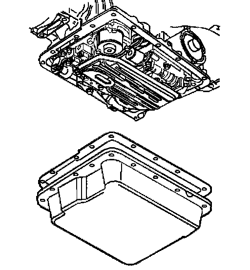 11. Clean the transmission case and the oil pan gasket surfaces with solvent, and air dry. You must remove all traces of the old gasket material.