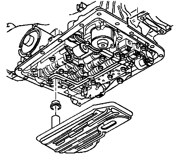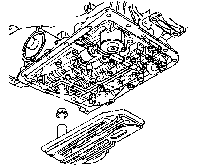 8. Remove the fluid filter and the seal. The seal may stick in the transmission case.