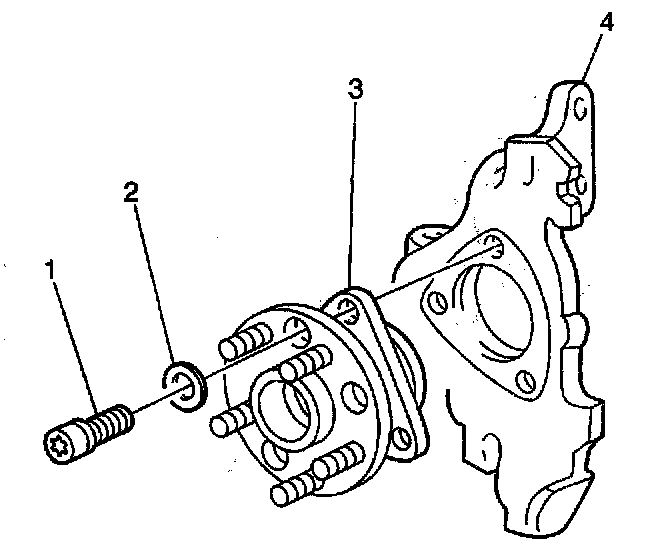 4. Remove the bolts (1) from the hub and bearing assembly (3).