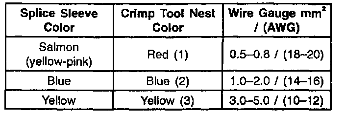 ^ See the following table for color coding of the splice sleeves, and the crimp tool nests.