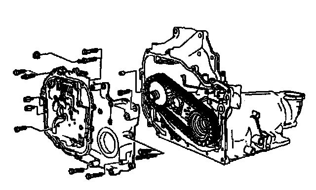 14. Install two 12 x 1.95 x 14 bolts in the dowel pin holes and tighten equally in order to pull the case cover loose