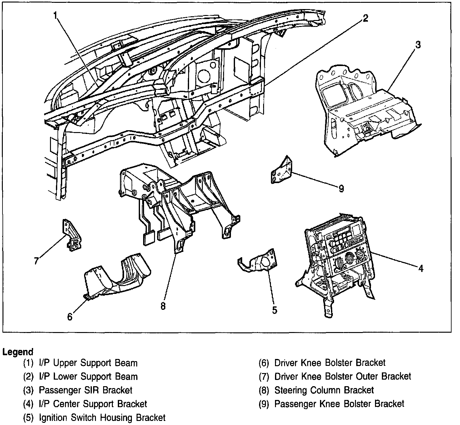 Instrument Panel Structure Primary Components: