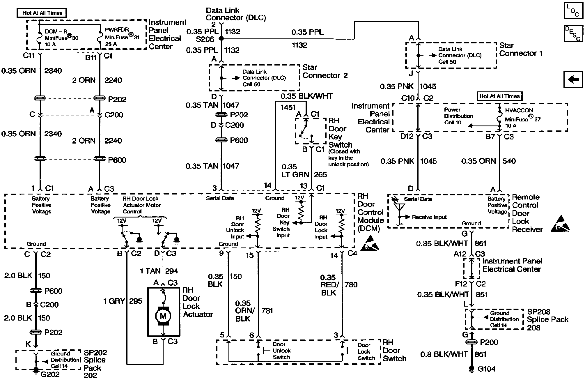 Keyless Entry Schematics: Power, Ground & RH Door Control Module (DCM):