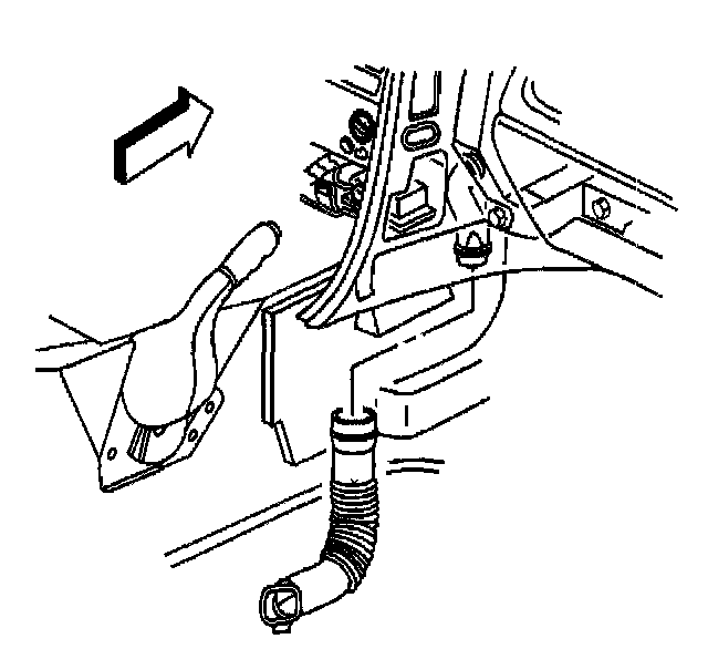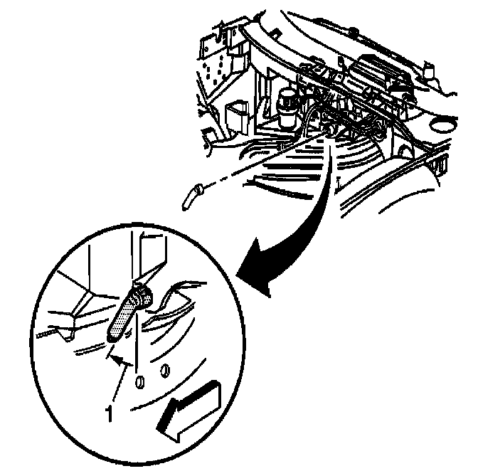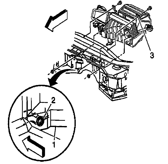 The opening in the dashmat for the HVAC module drain should be aligned so that the drain opening in the dash panel is approximately centered in the dash mat opening; allowing ample room for the module drain seal (2) to fully seat against the dash panel.