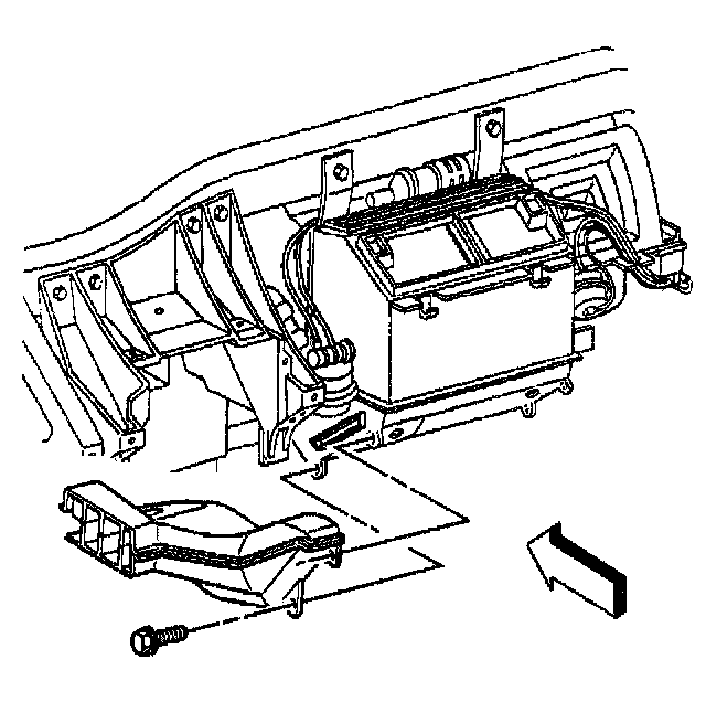 12. Install the RH floor air outlet duct to the HVAC module.