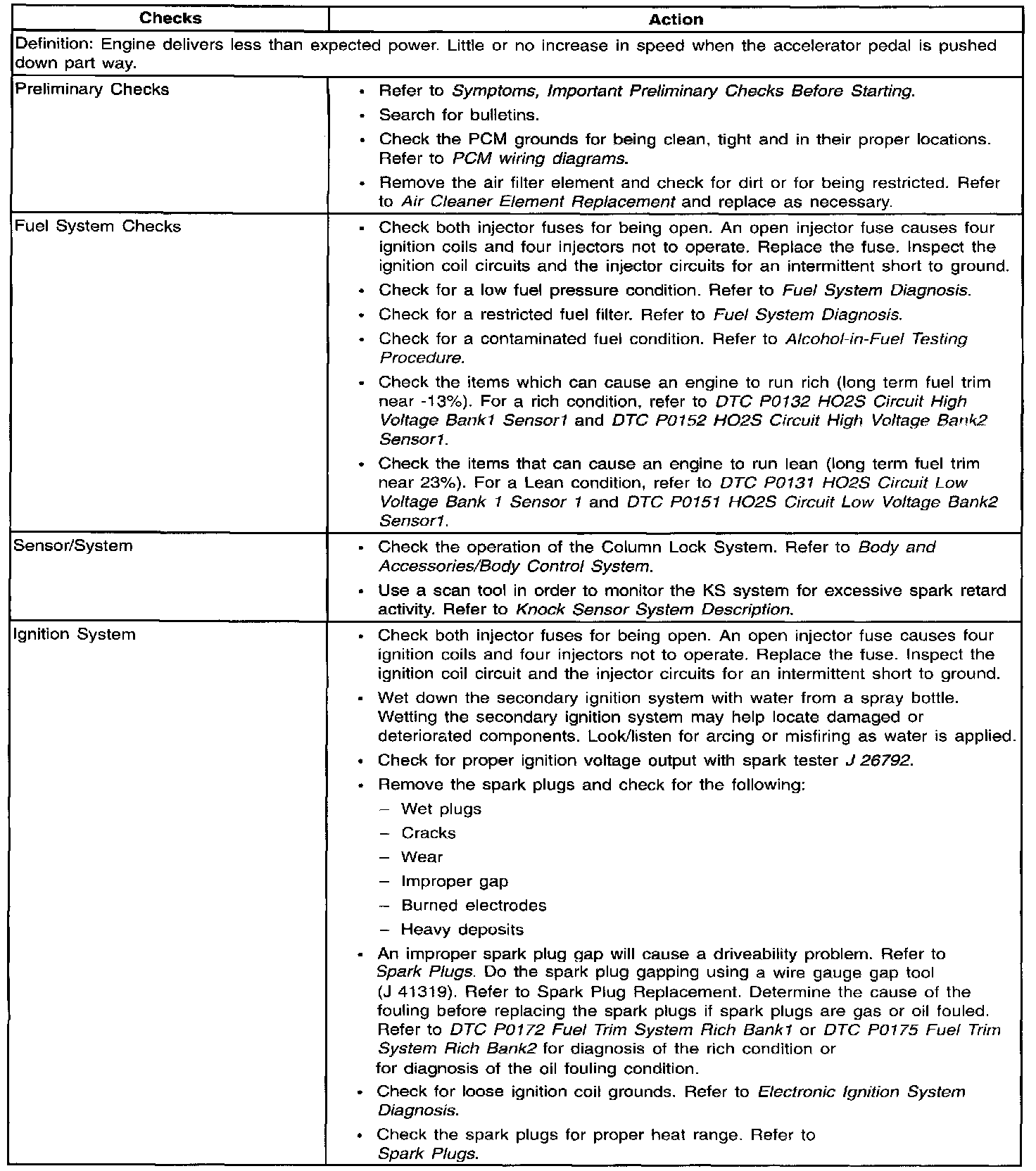 Lack of Power/Sluggish/Spongy/Stumble