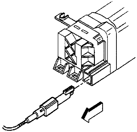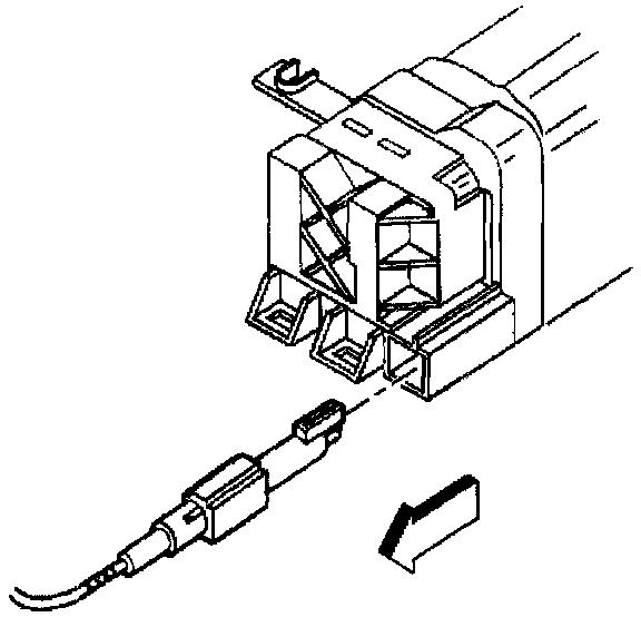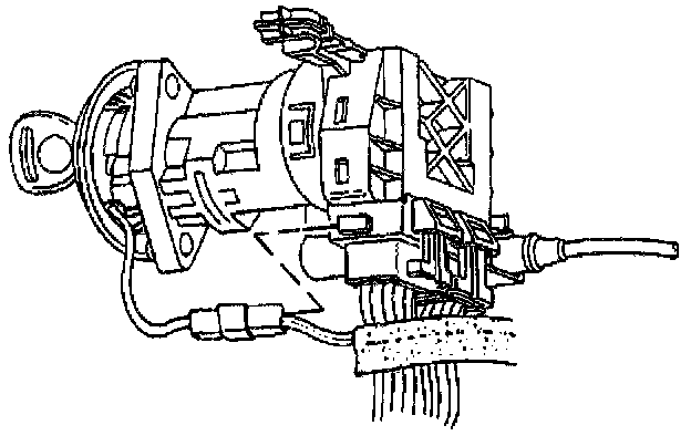 6. Remove the ignition switch lock cylinder electrical connector from the retaining tab on the side of the ignition switch.