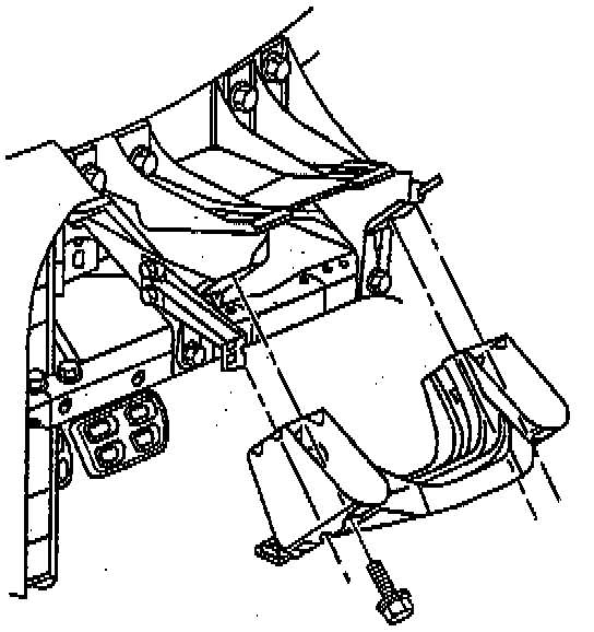 8. Install the driver knee bolster bracket (1). Refer to BRACKET REPLACEMENT - KNEE BOLSTER (DRIVER) in INSTRUMENT PANEL, GAGES AND CONSOLE.
