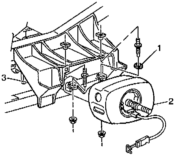 10. Remove the upper steering column bracket nuts from the upper reinforcement assembly (3).