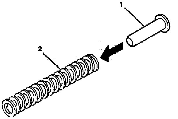 1. Install the spring guide (1) to the tilt spring (2). Lubricate with synthetic grease (service kit).