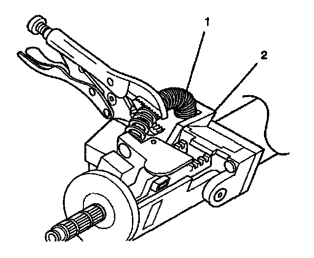 CAUTION: The tilt spring and the spring guide are under pressure and could become a projectile. During the disassembly and assembly procedures, secure the tilt spring using locking pliers. Exercise caution when removing or installing the tilt spring and the spring guide, as bodily injury may result.