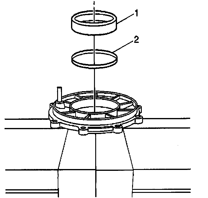 2. Remove the bearing race (1) and right side shim pack (2) from the right carrier cover.