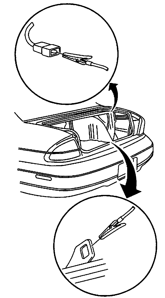 3. using a jumper wire with alligator clips, ground RKE programming connector. The door locks will lock and unlock, indicating that the Remote Control Door Lock Receiver (RCDLR) entered the keyless entry transmitter programming mode.