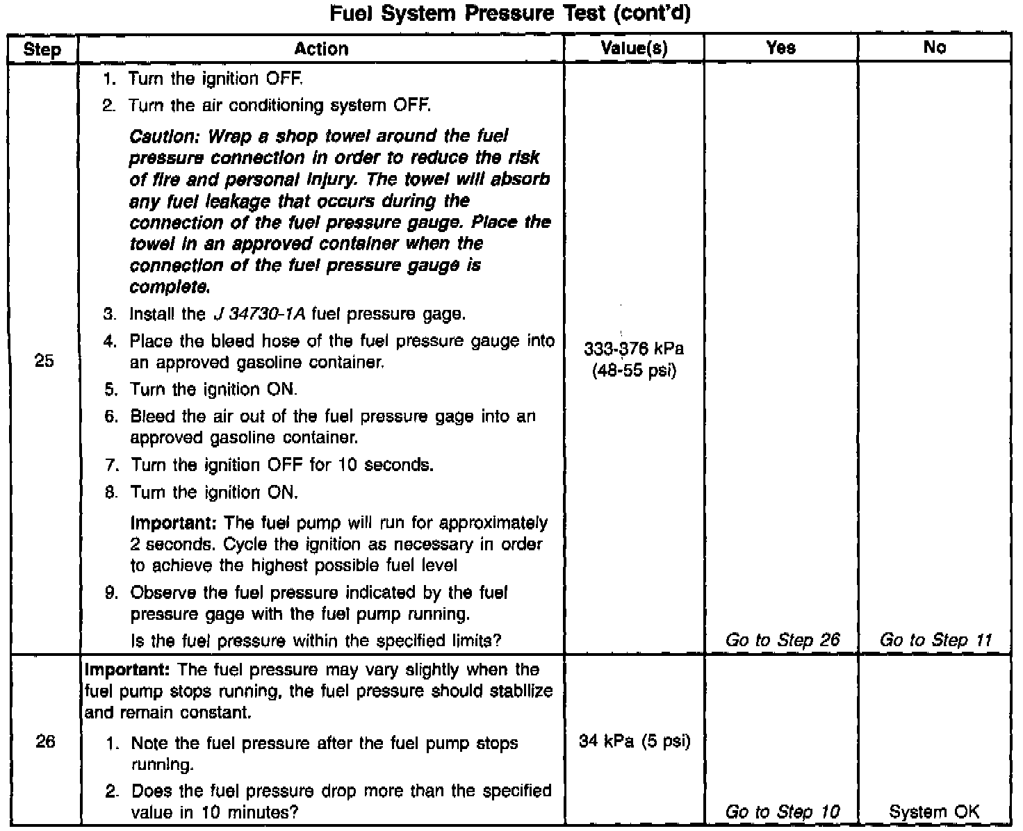 13. This test determines if the high fuel pressure is due to a restricted fuel return pipe or if the high fuel pressure is due to a faulty fuel pressure regulator.