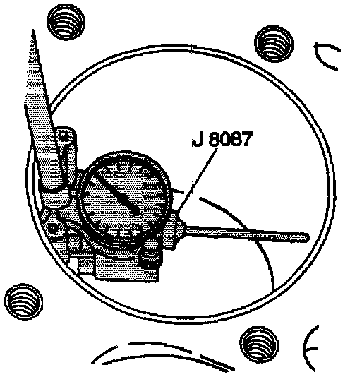 2. Inspect the piston and the piston pin. Use a bore gauge and measure the cylinder bore diameter. Measure at a point 64 mm (2.5 inch) from the top of the cylinder bore.