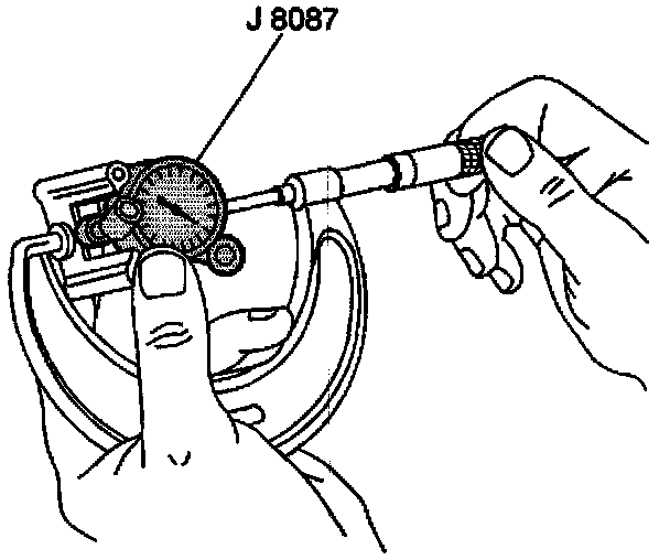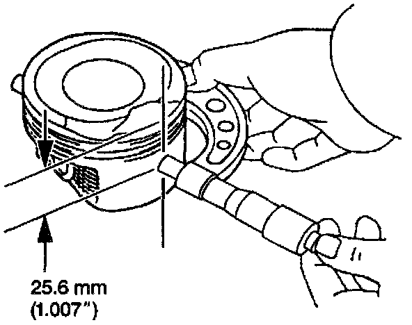 5. With a micrometer or caliper at a right angle to the piston, measure the piston 25 mm (1 inch) from the top of the piston.