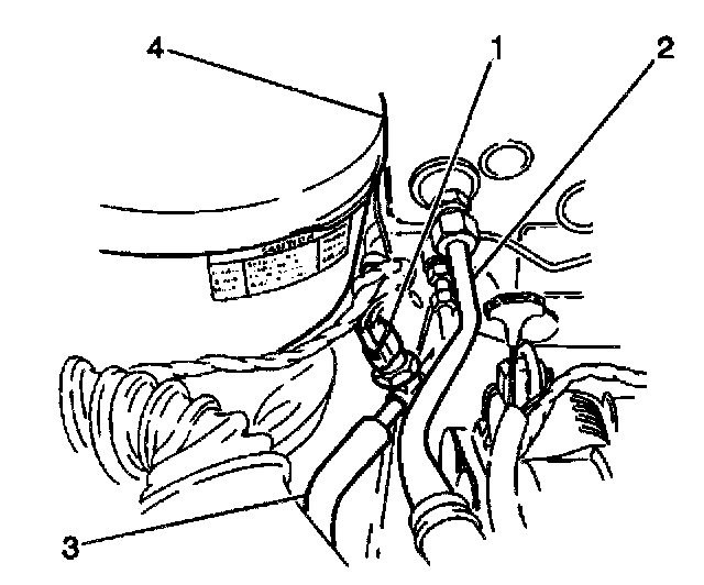 1. Install the A/C refrigerant pressure switch (1) to the evaporator inlet (4) pipe.