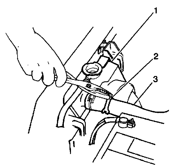 2. Release the hose clamps (2) at the thermostat outlet and the radiator in order to remove the upper radiator hose.