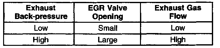 The relationship between exhaust back-pressure and EGR valve flow is charted in the table.