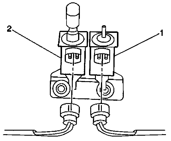 1. Disconnect the two vacuum hoses from the EGR solenoid vacuum valve (2).