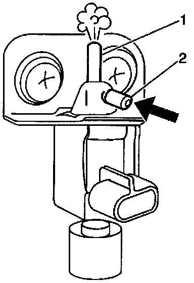 1. Disconnect the two vacuum hoses from the EGR solenoid vacuum valve (2).