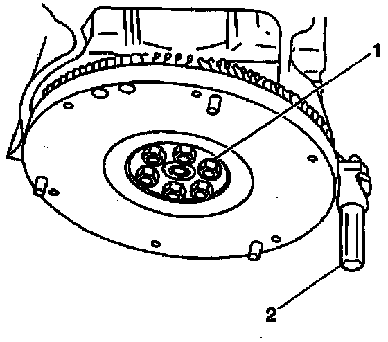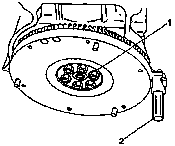 3. Apply GM P/N 12345493 or equivalent, to the flywheel retaining bolt threads.