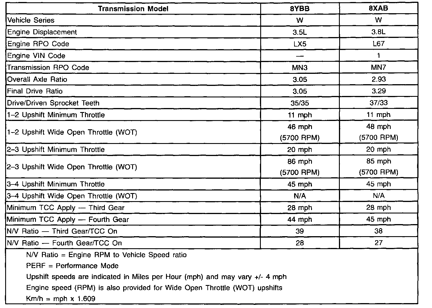 Shift Speed Chart