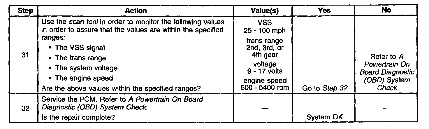 ^ There are high engine RPMs (fuel cut-off). Refer to Engine Controls for cruise control inhibit criteria diagnosis.
