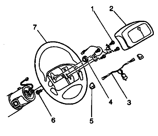 3. Remove the radio control switch (5) from the steering wheel (7).