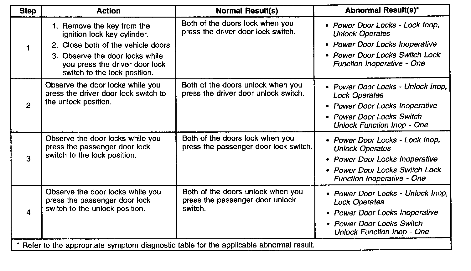 Power Door Locks System Check:
