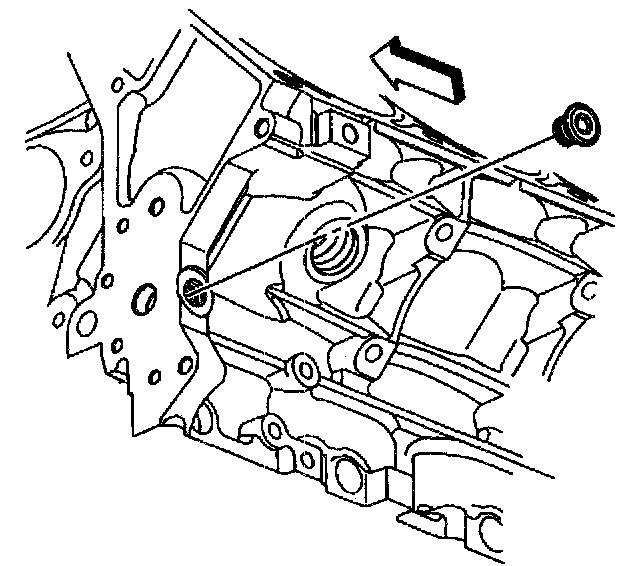 14. Apply sealant GM P/N 12345382 or equivalent to the sides of the NEW front oil gallery plug.
