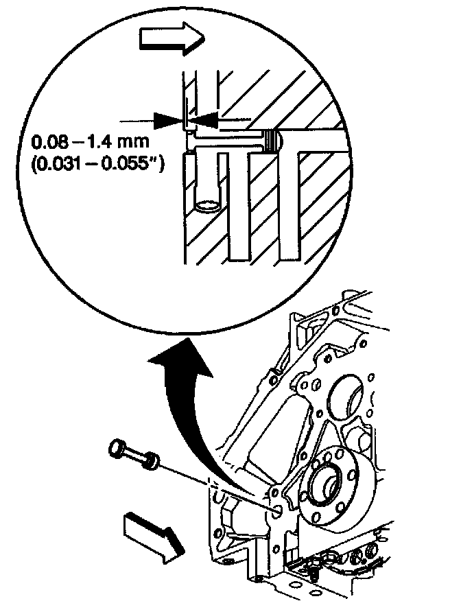 13. Install the block rear oil gallery plug into the oil gallery bore 0.8 - 1.4 mm (0.0315 - 0.055 inch) below flush.