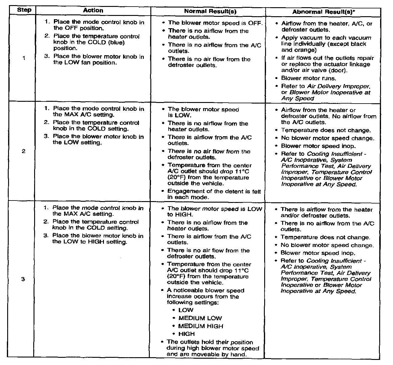 ^ Blower motor inoperative. Refer to Blower Motor Inoperative at Any Speed Blower Motor Inoperative - At Any Speed