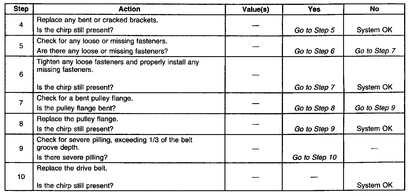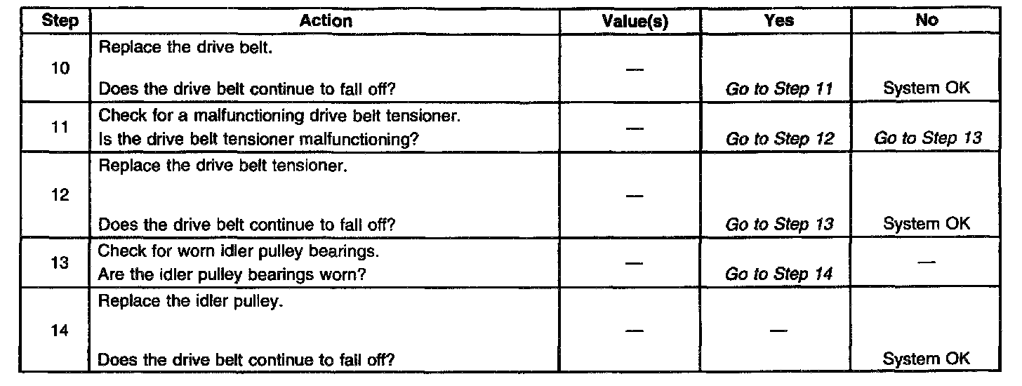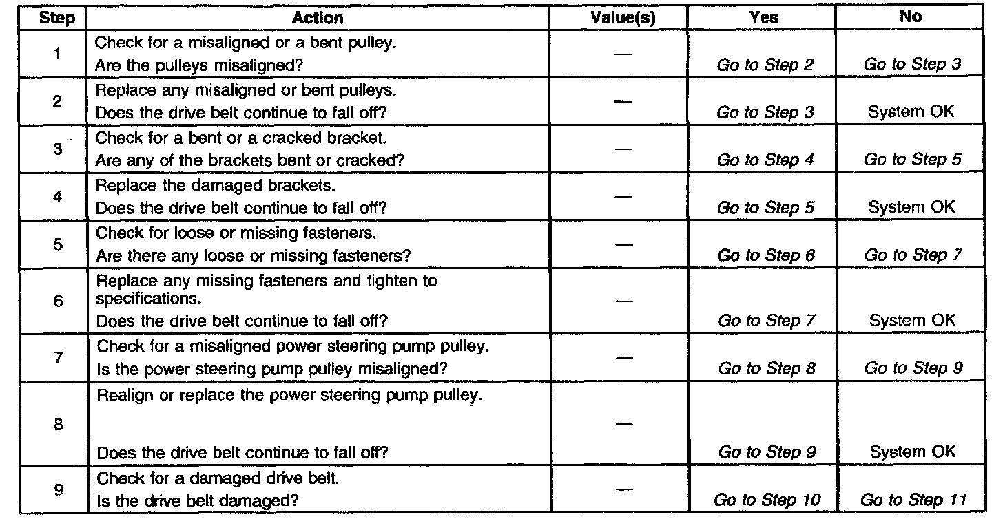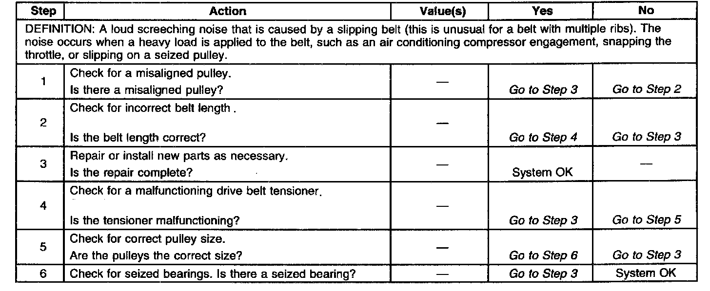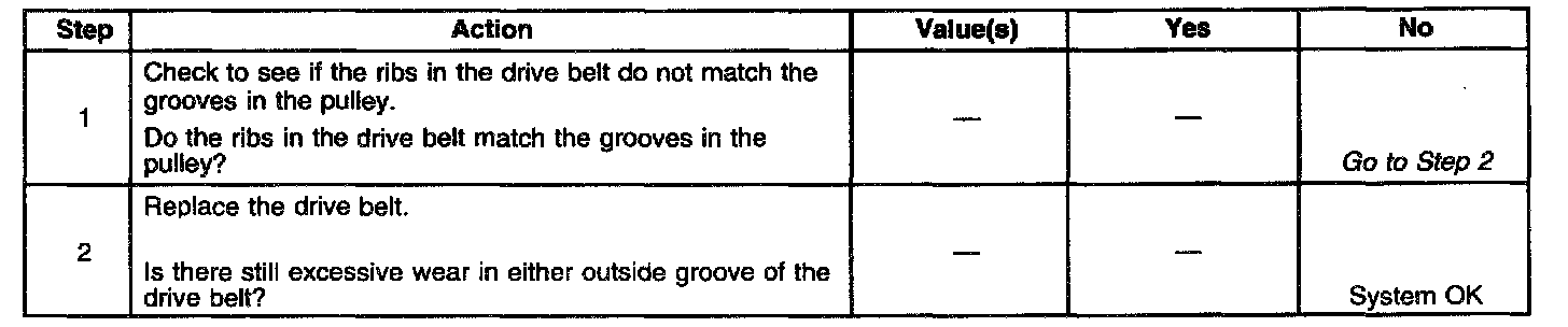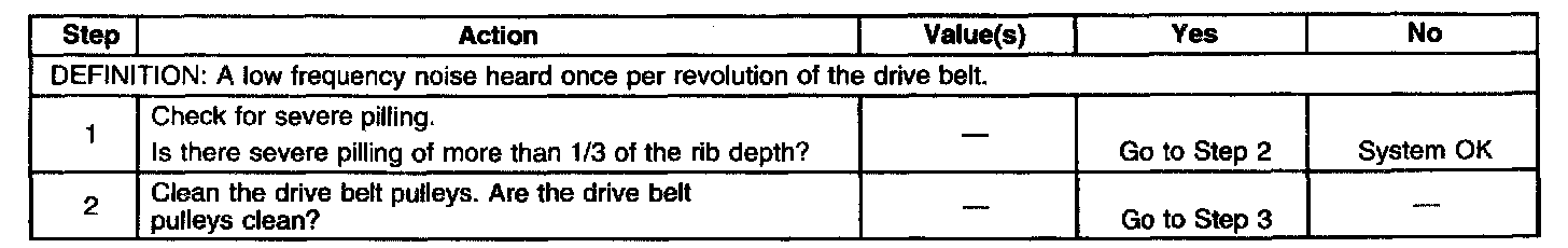The thump or knocking noise easily misdiagnosed as an engine noise. In order to diagnosis drive belt pilling, adhere to the following procedure:
